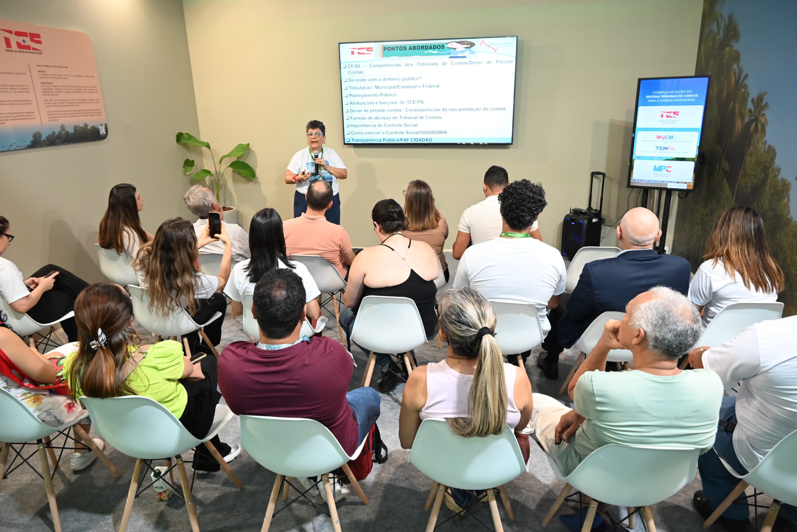 Estande Sistema Tribunais de Contas aborda controle social e educação ambiental em palestras na Green Zone