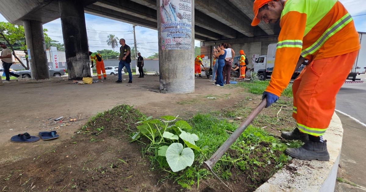 Área do viaduto de Jacarecica recebe ação conjunta de melhoria urbana