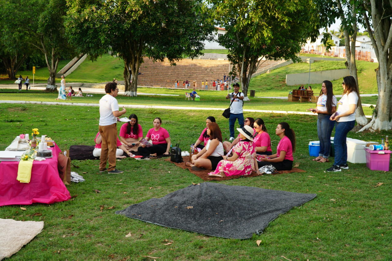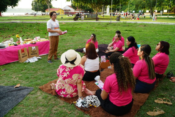 Durante o evento, servidores e voluntários da Agevisa/RO realizaram dinâmicas educativas e distribuição de panfletos informativos à comunidade, com orientações sobre a importância do autoexame, do diagnóstico precoce e dos cuidados preventivos com a saúde da mulher.