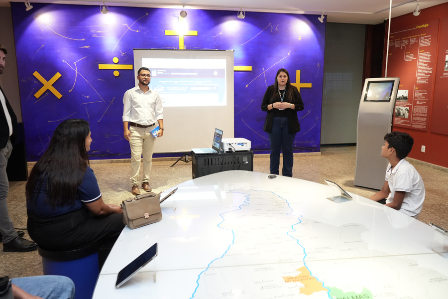 A visita foi monitorada pela servidora Márcia Barbosa, Coordenador do Centro de Documentação e Memória e pela servidora Claudete Ferreira, que explicaram todo processo histórico do TCETO desde 1989 até os dias atuais.