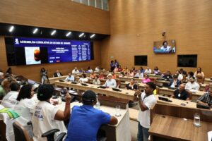 Foi realizada, nesta sexta-feira (7), a audiência pública intitulada ‘O direito humano à água: a vazão do Rio São Francisco, seus impactos e a dignidade das e dos pescadores e das comunidades’. A sessão foi promovida pela Assembleia Legislativa do Estado Sergipe (Alese), por meio da Comissão de Cidadania e Direitos Humanos, com o objetivo de discutir os efeitos da redução da vazão do rio nas comunidades ribeirinhas e seus impactos, especialmente para marisqueiras e pescadores artesanais.