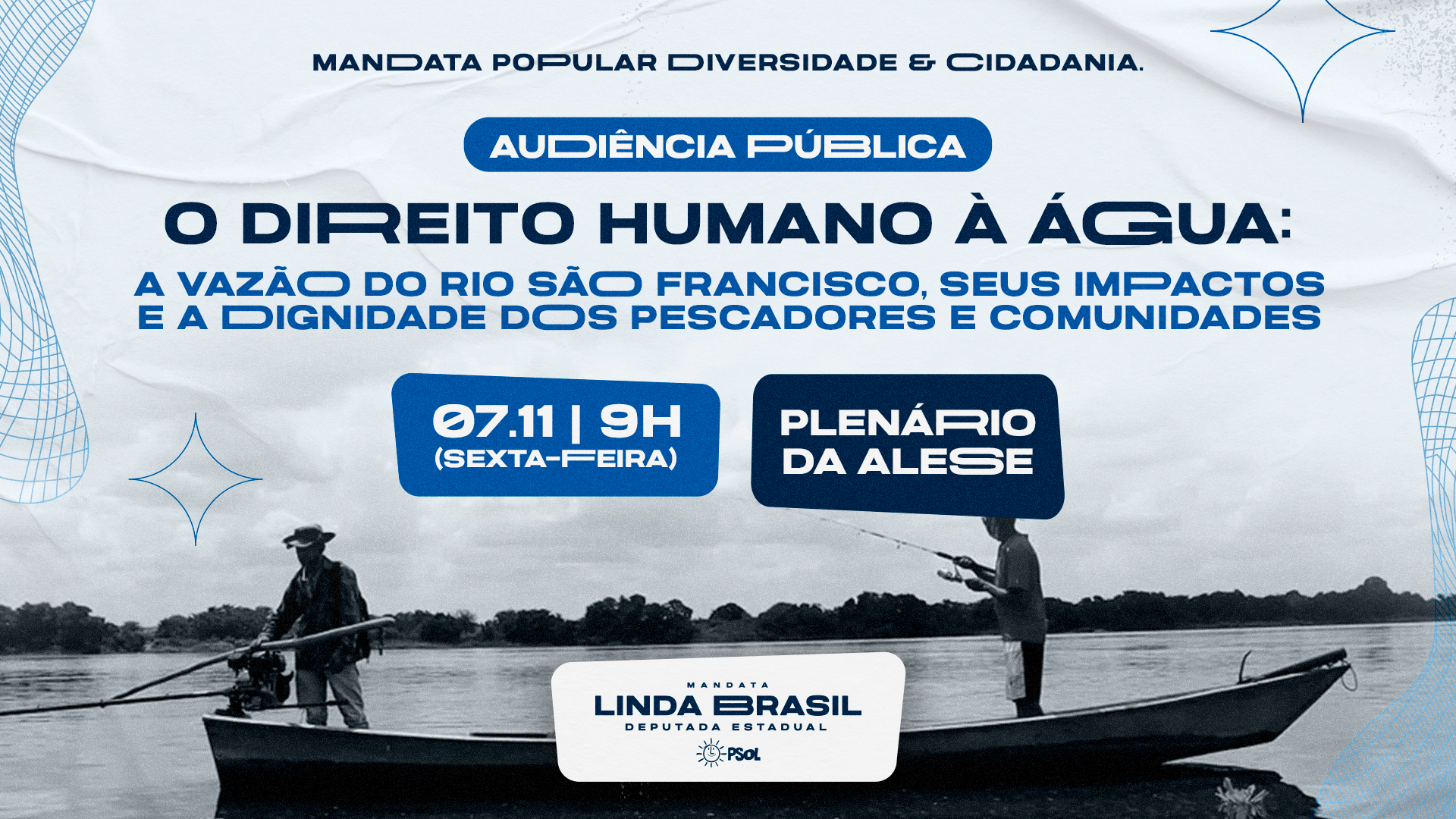 O quê: Audiência Pública – “O direito humano à água: a vazão do Rio São Francisco, seus impactos e a dignidade das e dos pescadores e comunidades”
