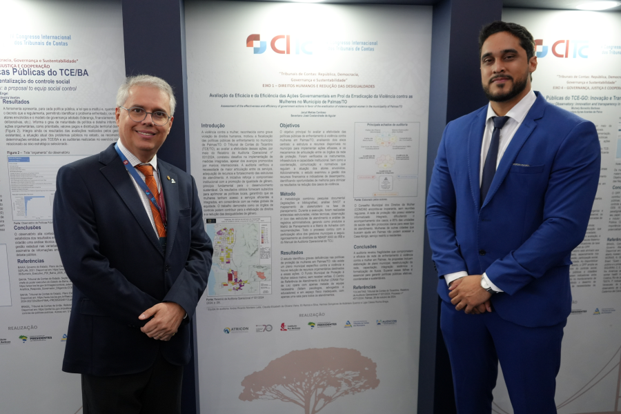O Tribunal de Contas do Tocantins (TCETO) teve um trabalho científico selecionado e exposto no dia 4 de dezembro durante o IV Congresso Internacional dos Tribunais de Contas (CITC), em Florianópolis (SC). O estudo, apresentado em formato de pôster, é assinado pelo servidor Jaryd Matias Cardoso e pelo conselheiro Severiano Costandrade, e integra a 1ª edição da Revista Científica do CITC, que reúne pesquisas, metodologias e boas práticas dos Tribunais de Contas do país.