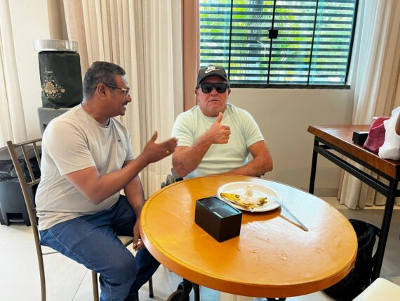 “Sou beneficiário do Prato Fácil desde que começou a atender no bairro 4 de Janeiro e além da comida de qualidade ofertada no almoço e agora com o café da manhã gratuito, considero importantes também os momentos de interação que esses programas proporcionam para pessoas, que assim como eu, moram sozinhas e não têm com quem interagir em suas casas”, destacou, ao mesmo tempo em que conversava com outros dois beneficiários.