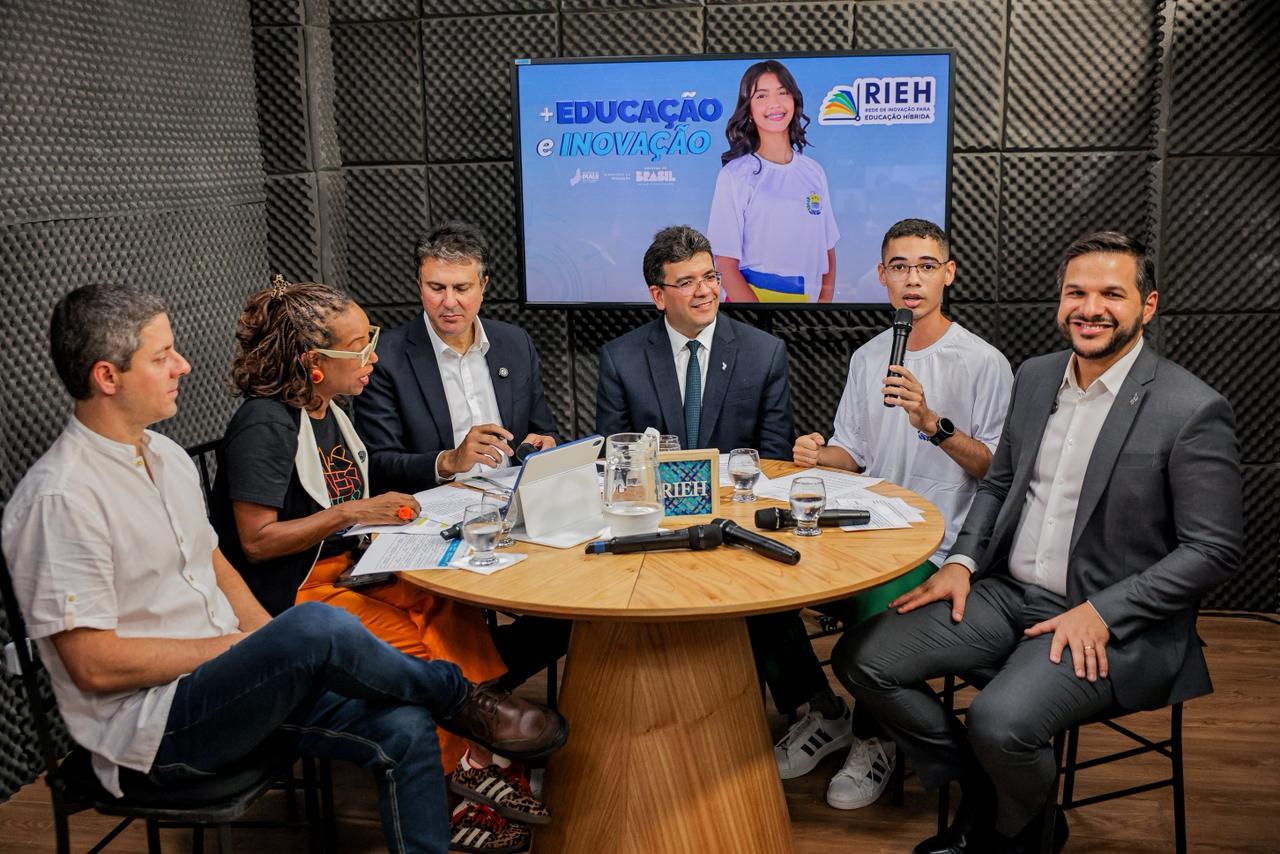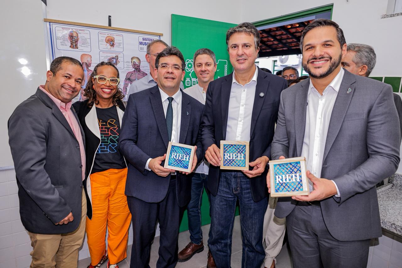 O ministro da Educação, Camilo Santana, o governador Rafael Fonteles e o secretário da Educação, Washington Bandeira, inauguraram, nesta terça-feira (04), o primeiro Núcleo da Rede de Inovação para a Educação Híbrida (RIEH) do estado, situado no Centro Estadual de Tempo Integral (Ceti) Professora Júlia Nunes Alves, na zona sudeste de Teresina. O espaço oferece estrutura para que a escola possa ampliar suas iniciativas pedagógicas e inovar na construção de aulas interativas.