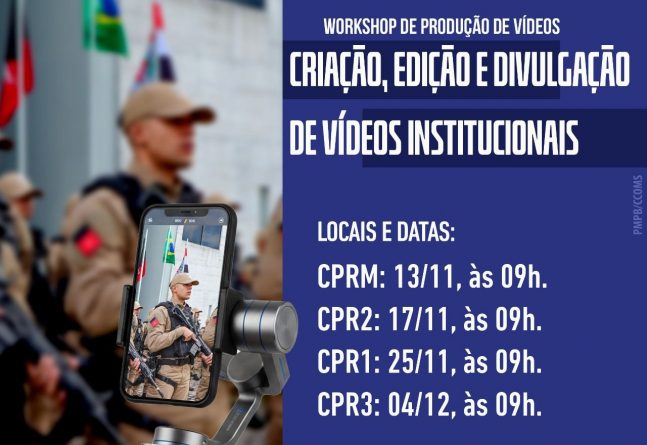 A Polícia Militar iniciou, nesta última quinta-feira (13), uma série de capacitações voltadas aos representantes da comunicação social das Unidades da corporação. O “Workshop de Produção de Vídeos Institucionais” instruiu os militares sobre criação, edição e divulgação dos vídeos, principalmente para as plataformas das redes sociais das unidades da corporação.