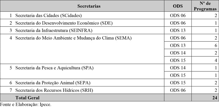 24 programas relacionadas com o ODS na Dimensão Ambiental foram desenvolvidos pelo Governo do Ceará no ano passado