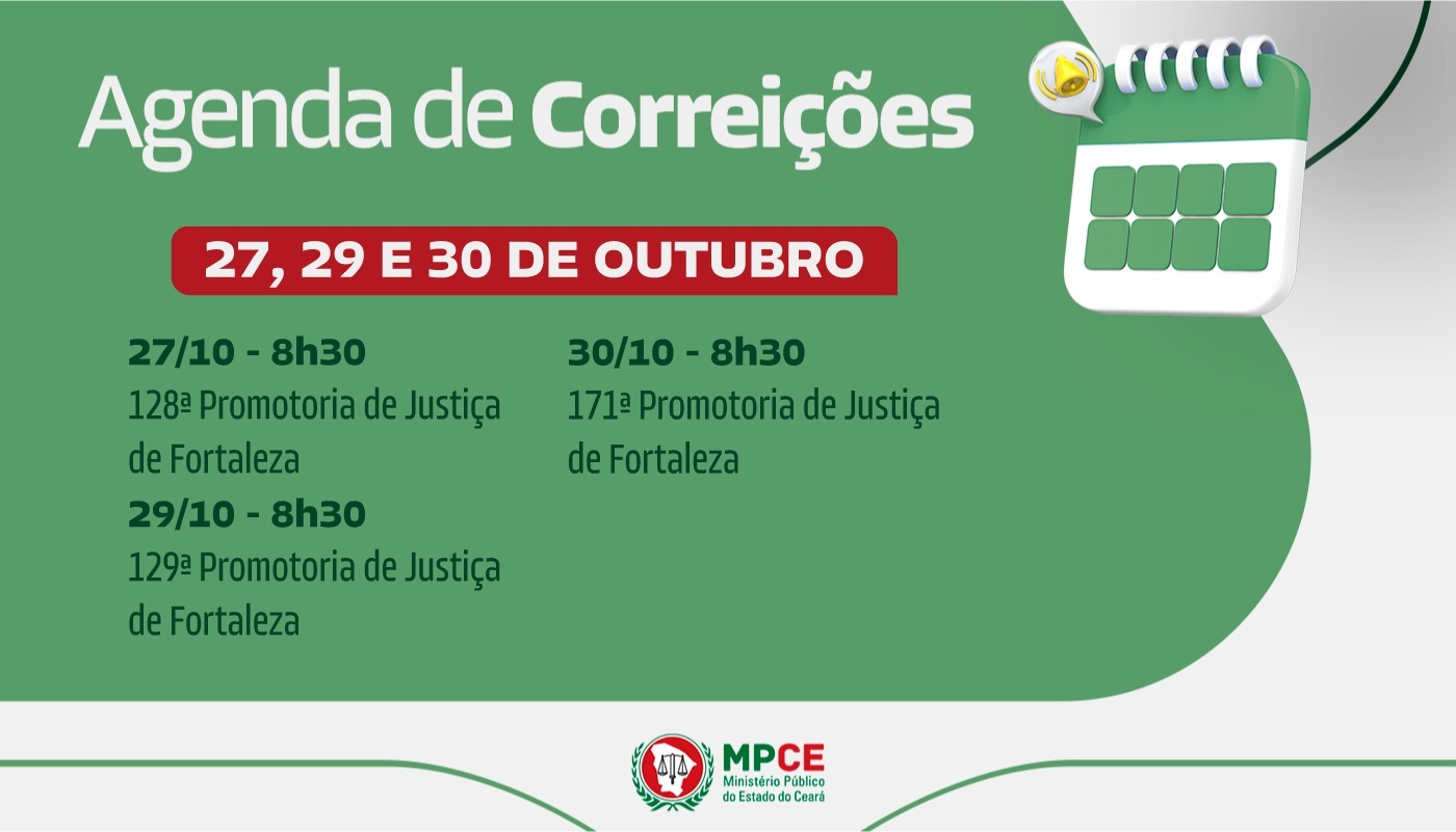 Corregedoria-Geral do MP visita Promotorias de Justiça de Fortaleza nos dias 27, 29 e 30 de outubro