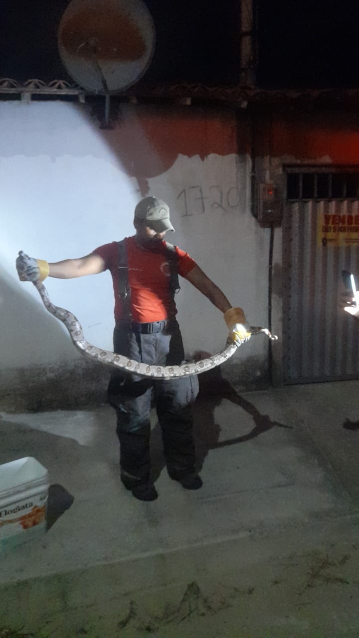 2. Bombeiros capturam jiboia de aproximadamente dois metros em residência no Jardim das Oliveiras