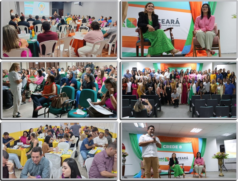 As Coordenadorias Regionais de Desenvolvimento da Educação (Credes) e Superintendência das Escolas Estaduais de Fortaleza (Sefor) realizam, durante o mês de janeiro, no período que antecede a volta às aulas, a Jornada Pedagógica 2024. A iniciativa ocorre com o objetivo de planejar as ações a serem postas em prática ao longo do ano, por cada escola, no intuito de otimizar o processo de ensino e aprendizagem. A secretária Eliana Estrela participou, na última terça-feira (16), da abertura da Jornada Pedagógica da Crede 8, no auditório da Escola Estadual de Educação Profissional (EEEP) Clemente Olintho Távora Arruda, em Baturité. A secretária executiva do Ensino Médio e Profissional, Jucineide Fernandes, também esteve presente na ocasião.