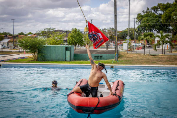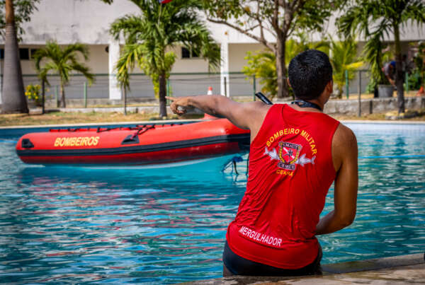 A programação teve início às 06h30, com a apresentação dos competidores e mergulhadores ao Comando-Geral do CBMCE. Ao longo da manhã, os participantes acompanharam instruções, simulações de resgate e apresentação de equipamentos empregados diariamente nas ocorrências aquáticas, reforçando a importância do preparo físico, da técnica e da disciplina coletiva para garantir a segurança da população.