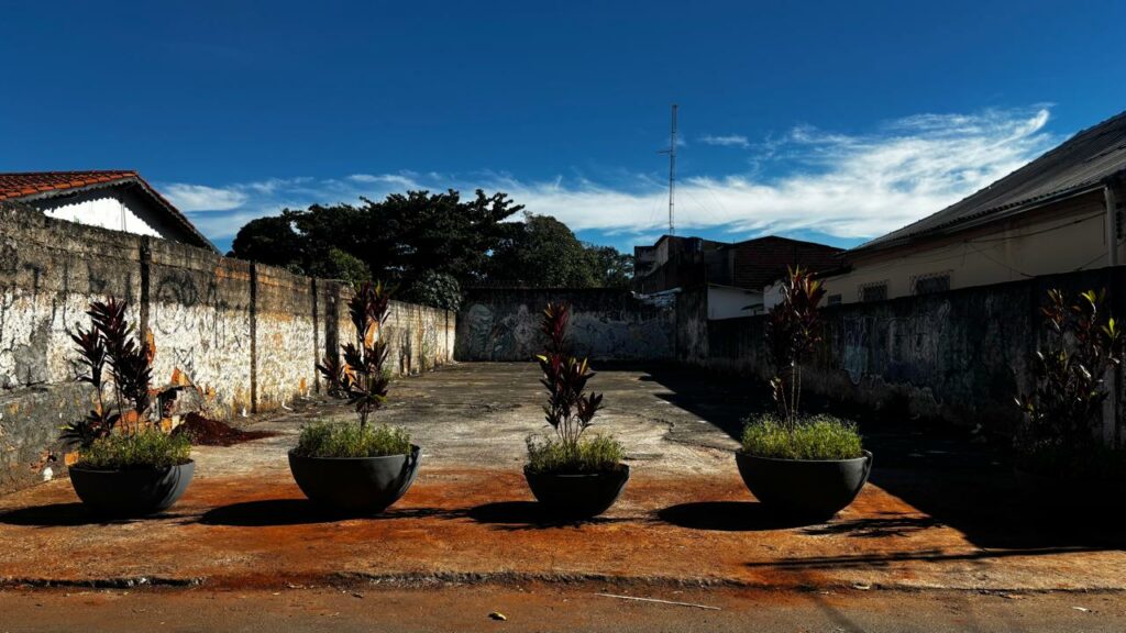 Para a implantação da barreira, foram utilizados cinco vasos de grande porte, cerca de 400 mudas ornamentais da espécie mini neve da montanha, além de terra adubada e mudas de cróton vermelho. A solução cria um bloqueio físico sem alterar a estrutura do lote.