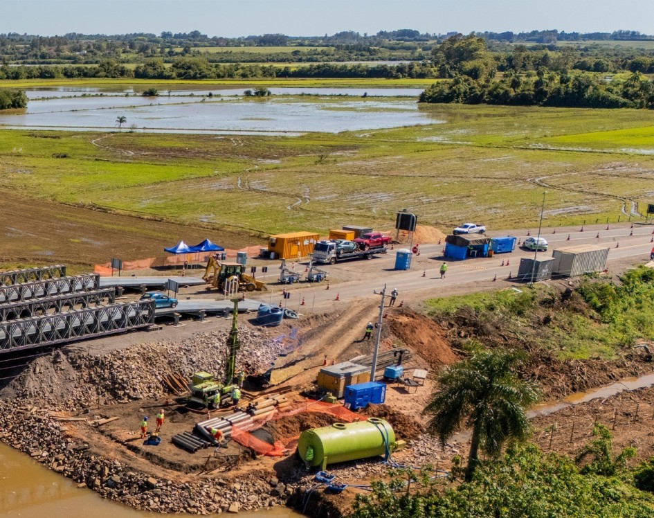 O governo do Estado, por meio da Secretaria da Reconstrução Gaúcha (Serg), acompanha as obras de reconstrução de duas novas pontes na rodovia RSC-287. Após um mês do início dos trabalhos realizados pela Rota de Santa Maria (Grupo Sacyr), concessionária que administra a estrada, já foi possível verificar a conclusão da etapa de construção dos aterros das novas pontes da rodovia RSC-287 nos arroios Grande e Barriga.