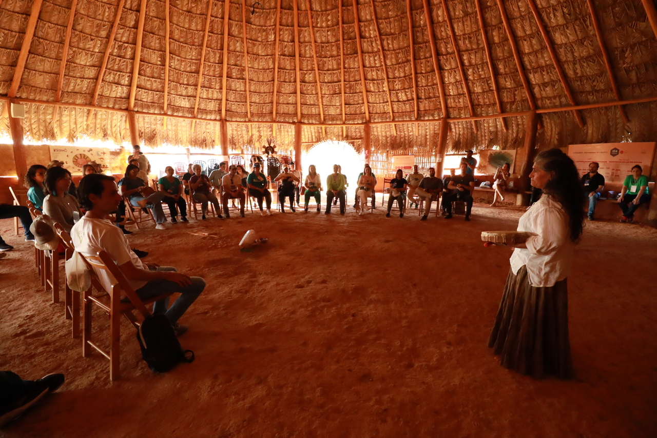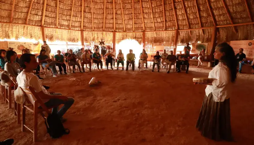 Aldeia Multiétnica na Chapada dos Veadeiros onde on visitantes conhecem a tradição de várias etnias indígenas e são recebidos com informações do local e presencial um ritual para o bem-estar (Foto: Edmar Wellington)