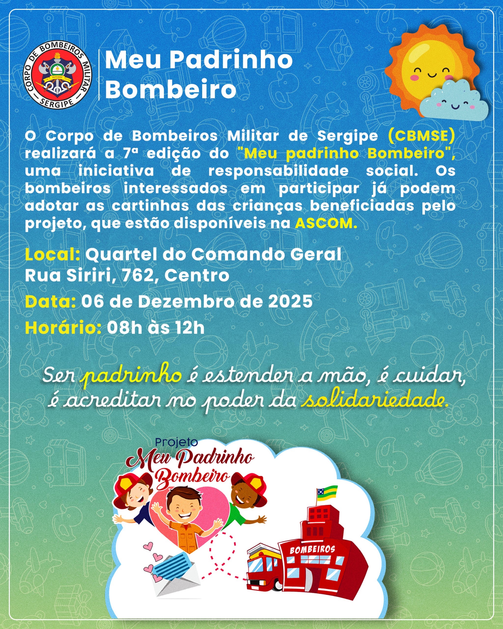 ”CONVITE À IMPRENSA: CBMSE realiza 7ª edição do Projeto “Meu Padrinho Bombeiro”