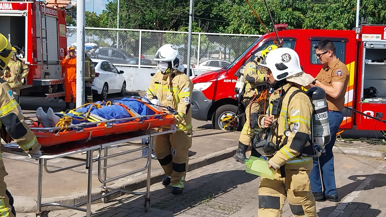 Nesta sexta-feira, a simulação ocorreu no HGR (Hospital Geral de Roraima Rubens de Souza Bento), quando as equipes atuaram para atender vítimas com dificuldade de locomoção. Como o princípio de fogo se concentrou na área superior da unidade, foram utilizados os sistemas de rapel e tirolesa.