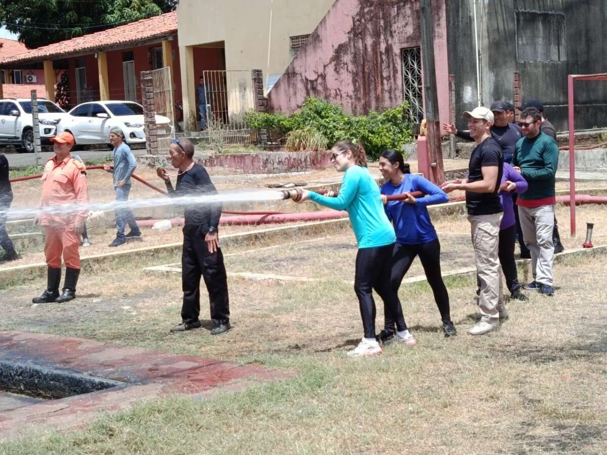O treinamento foi conduzido em duas etapas. Na parte teórica, os instrutores Capitão Sérgio e Tenente Haroldo apresentaram conteúdos sobre técnicas de primeiros socorros, prevenção e princípios de combate a incêndios, além de orientações sobre evacuação de ambientes e uso adequado dos equipamentos de segurança.
