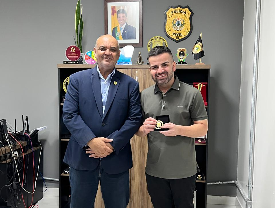 Em reconhecimento ao apoio contínuo do município às demandas da Delegacia de Tarauacá, o delegado-geral entregou ao prefeito Rodrigo Damasceno uma medalha institucional da Polícia Civil. O gesto simboliza a gratidão da instituição pela colaboração prestada sempre que solicitada.
