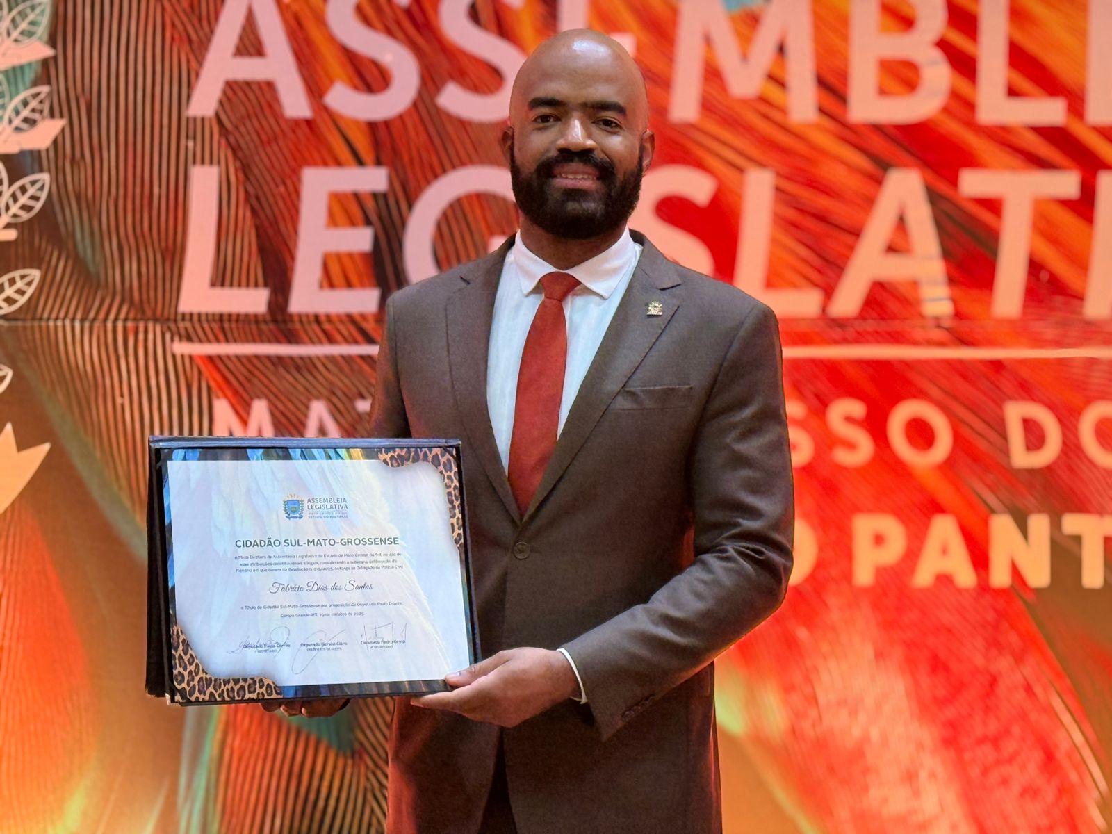 Na noite da última quarta-feira (29), no Centro de Convenções Arquiteto Rubens Gil de Camillo, em Campo Grande, o Delegado Regional de Polícia de Corumbá, Fabrício Dias dos Santos , foi agraciado com o Título de Cidadão Sul-Mato-Grossense. A homenagem, concedida pela Assembleia Legislativa do Estado de Mato Grosso do Sul (ALEMS), reconhece cidadãos nascidos em outras unidades da federação que tenham contribuído de maneira significativa para o desenvolvimento e bem-estar da população sul-mato-grossense.