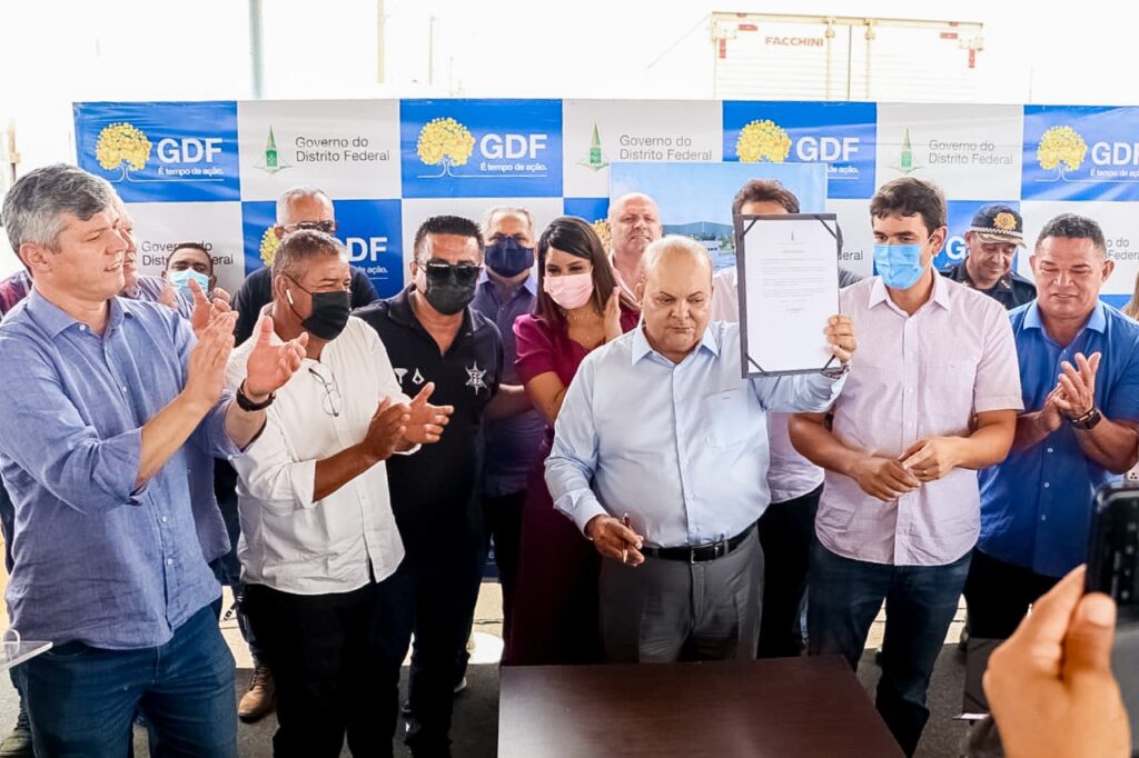 O governador Ibaneis Rocha assinou, nesta terça-feira (21), a ordem de serviço para a construção do restaurante comunitário e do terminal rodoviário do Sol Nascente/Pôr do Sol. Localizados no trecho 2 da região administrativa (RA), os equipamentos somam R$ 8,3 milhões em investimentos. As obras serão conduzidas por empresas contratadas pela Novacap e Secretaria de Transporte e Mobilidade (Semob), respectivamente.