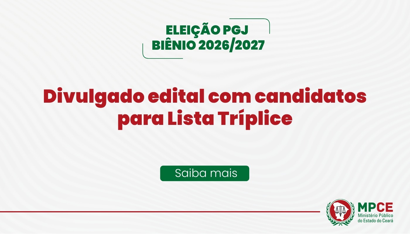 Divulgada lista com candidaturas deferidas para formação da lista tríplice ao cargo de PGJ – biênio 2026/2027