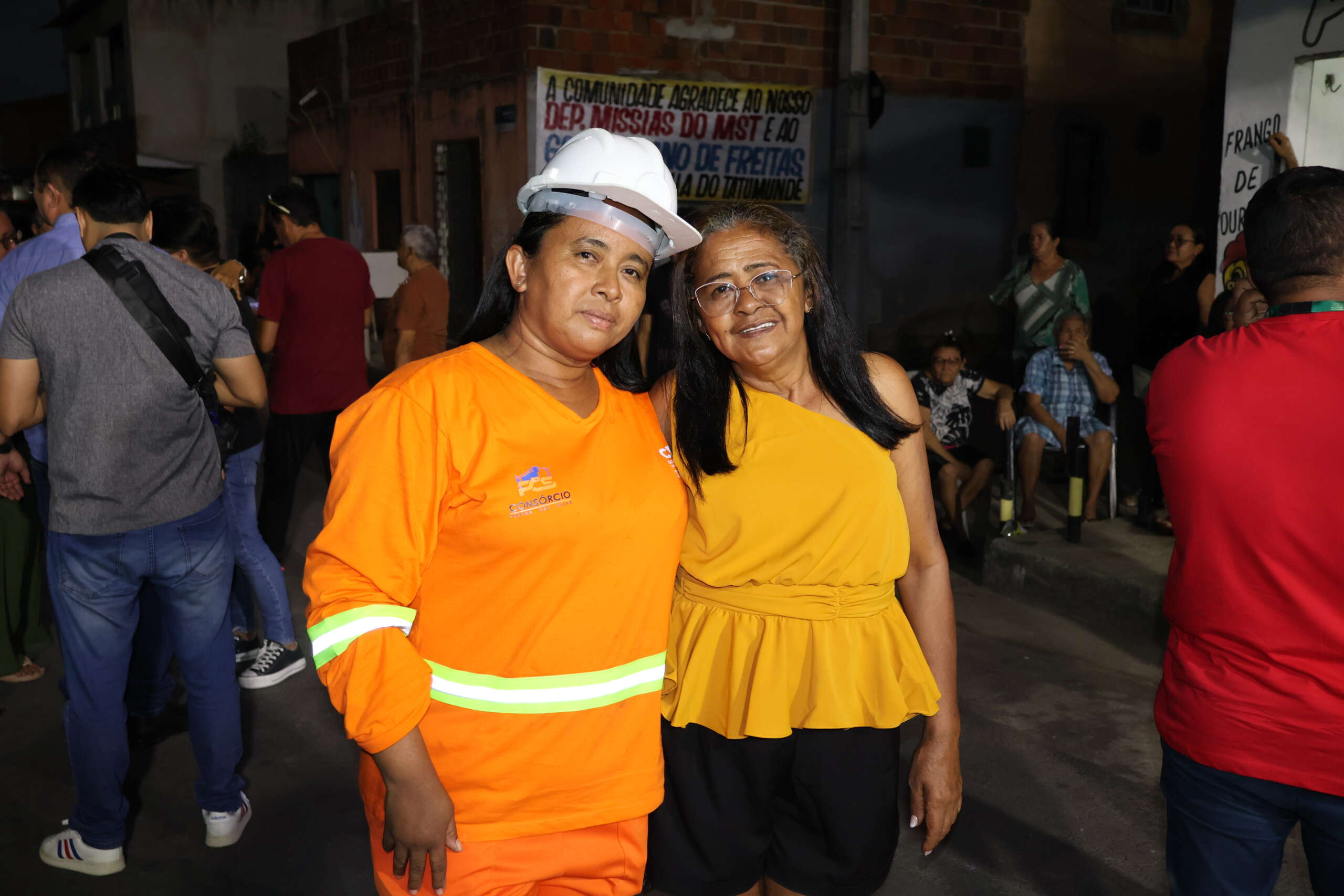 Para Ana Paula (direita), moradora do Conjunto Tatumundé há mais de 20 anos, a construção do centro esportivo vai representar uma fonte a mais de renda, um espaço que movimentará o comércio da área: “não são só as crianças e os adolescentes do nosso bairro que vão ganhar e aproveitar essa areninha; eu mesma vou trazer meu carrinho e encostar aqui ao lado dela para vender merenda, e olha que vai ter muito vendedor fazendo isso quando a areninha estiver pronta”, observa Ana Paula.