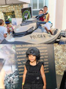 Outro destaque foi a participação das unidades especializadas da PMBA, que montaram estandes interativos com o objetivo de aproximar o público infantil do trabalho policial, a Companhia de Polícia de Proteção Ambiental (Coppa), e os Batalhões de Choque e de Operações Policiais Especiais (Bope), a aeronave do Graer e as motos do Esquadrão Águia também despertaram curiosidade e interesse das crianças.