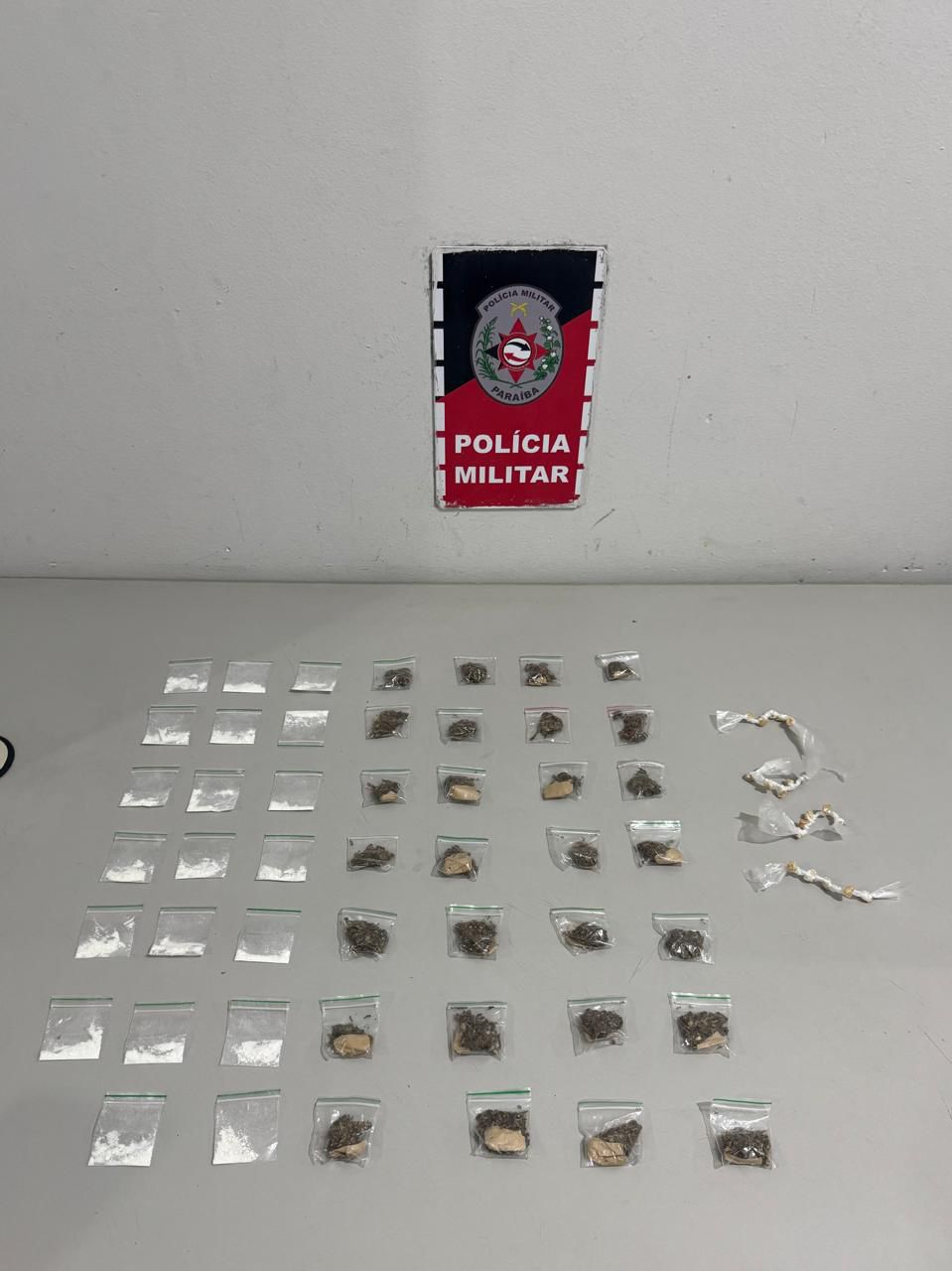A droga foi apreendida no bairro de Tibiri, também à noite, durante rondas. O material foi abandonado por um suspeito, que fugiu ao perceber a presença da PM. Dentro do saco deixado pelo criminoso, foram encontradas 28 porções de maconha, ⁠20 de crack e ⁠20 de cocaína.