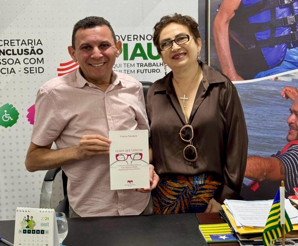 A escritora piauiense Virna Soares, que tem deficiência visual, vai lançar, neste sábado (25), o livro “Olhos que vencem”, durante evento no Café 4 Estações (Rua Miosótis, nº 751, bairro Jóquei), a partir das 17h. O projeto conta com o apoio da Secretaria para Inclusão da Pessoa com Deficiência (Seid) e traz a mensagem de que a pessoa com deficiência não precisa pedir permissão para existir.