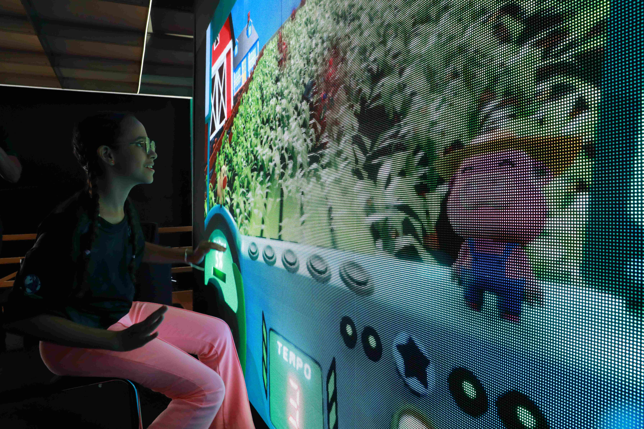 Com 600 metros quadrados, o estande foi estruturado para acolher diferentes dinâmicas ao mesmo tempo. Arena, palco e ambientes interativos funcionam de forma integrada, permitindo que o visitante circule, acompanhe conteúdos e, muitas vezes, permaneça.