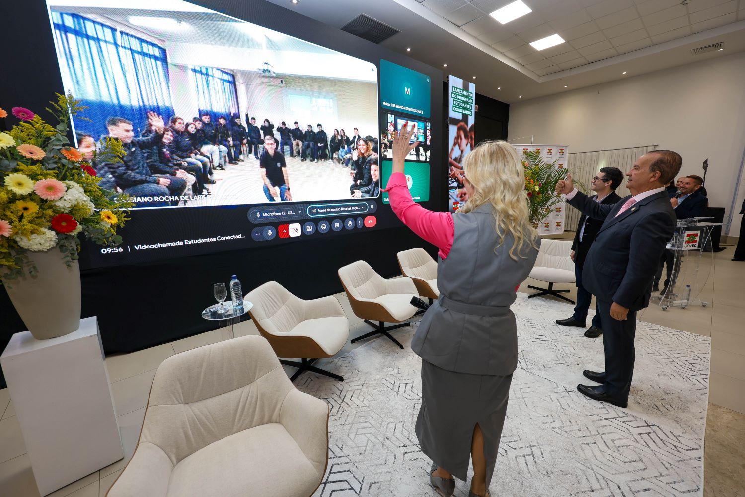 O governador do Estado, Jorginho Mello, esteve presente nesta quinta-feira, 23, ao lado da secretária de Estado da Educação, Luciane Ceretta, no lançamento do programa Estudantes Conectados e do Currículo de Educação Digital. O objetivo é preparar os estudantes para um uso crítico, criativo, ético e seguro das tecnologias. O Governo do Estado vai investir, nesta primeira fase, R$ 80 milhões.