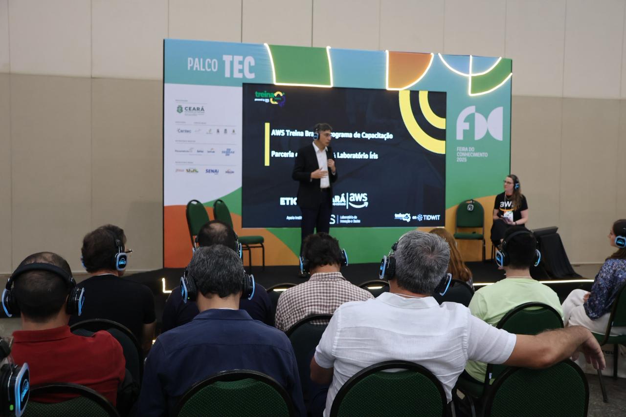 O lançamento ocorreu na tarde desta sexta (7), no palco TEC, da Feira do Conhecimento 2025, promovida pela Secretaria da Ciência, Tecnologia e Educação Superior (Secitece), no Centro de Eventos do Ceará. A cerimônia contou com a presença do presidente da Empresa de Tecnologia da Informação do Ceará (Etice), Hugo Figueirêdo; de Andressa Reguini Sinenberg, Gerente Sênior de Programas da AWS na América Latina; e da coordenadora do IRISLab, Luiza Pacheco.
