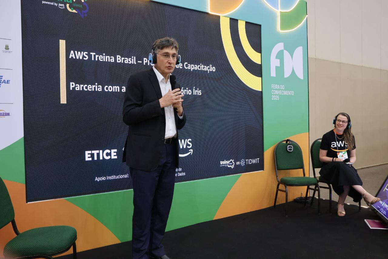 Para Hugo Figueirêdo, a iniciativa vai gerar um impacto positivo na qualificação profissional no Ceará, reforçando o compromisso do Estado com a transformação digital. “A parceria da Etice com a AWS já tem muitos anos e ficará ainda mais forte com este programa. A Etice é um órgão estadual, ligado à Casa Civil, e conta com o apoia do IRISLab para que os serviços de tecnologia da informação cheguem com qualidade aos cearenses. Por meio do Treina Brasil, poderemos capacitar empreendedores, pequenos empresários e estudantes. Queremos mudar vidas por meio do conhecimento. São 30 mil bolsas para começar, mas se a demanda aumentar, vamos ampliar. O Ceará vai poder crescer ainda mais com a disseminação deste conhecimento”, ressaltou. Ele lembrou que o intuito da Feira é justamente popularizar o conhecimento, principalmente para os estudantes de escolas públicas, segundo a orientação do governador Elmano de Freitas.