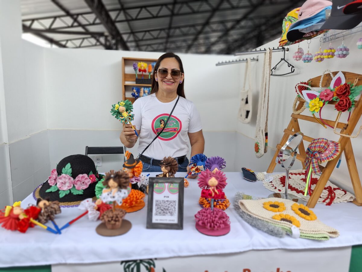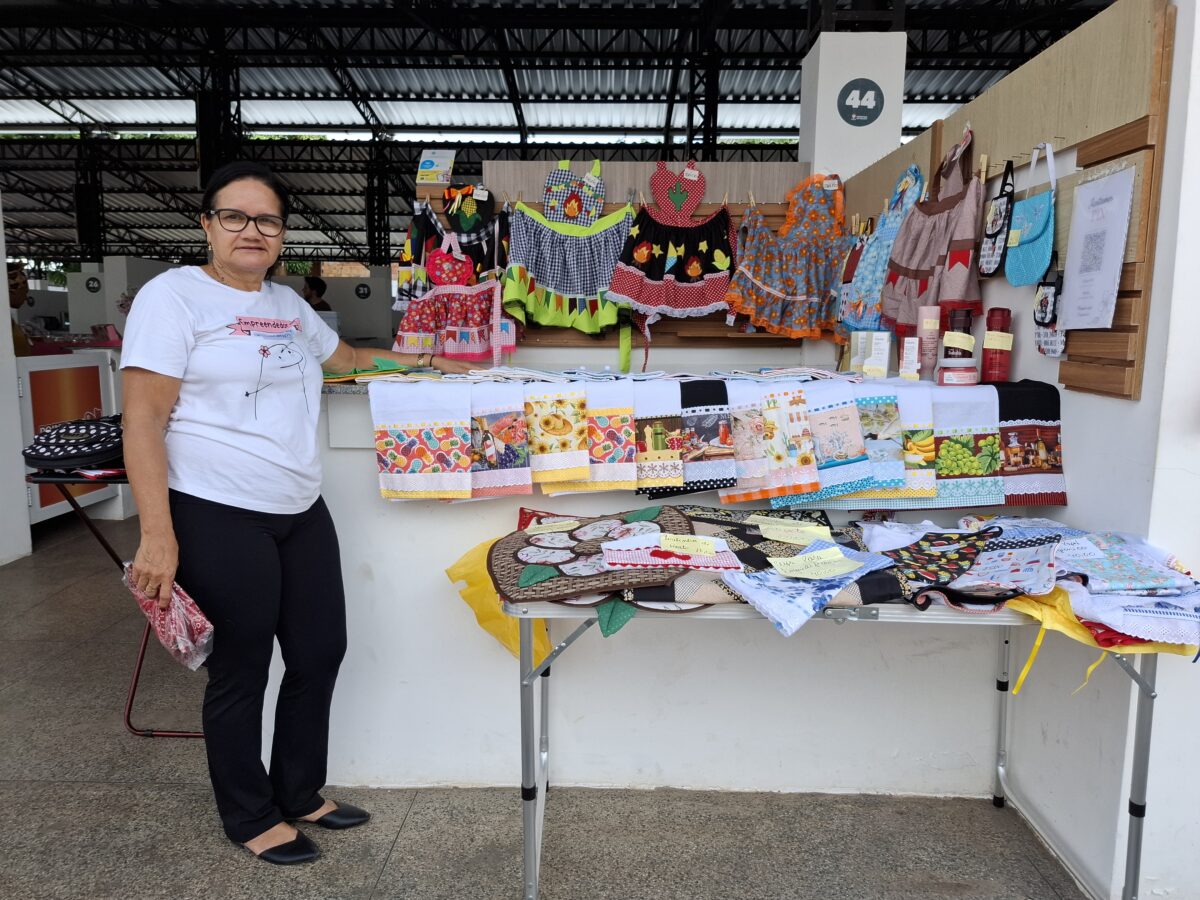 A empreendedora Oda Mendes, que atua no ramo do artesanato e participa pela segunda vez do Feirão, destaca a importância de ter um espaço como este para expor e vender seus produtos.