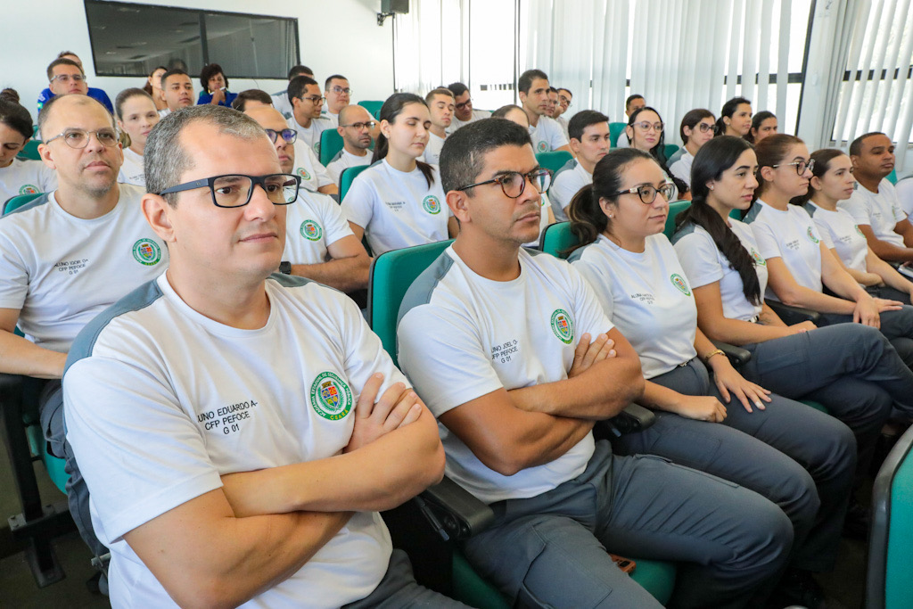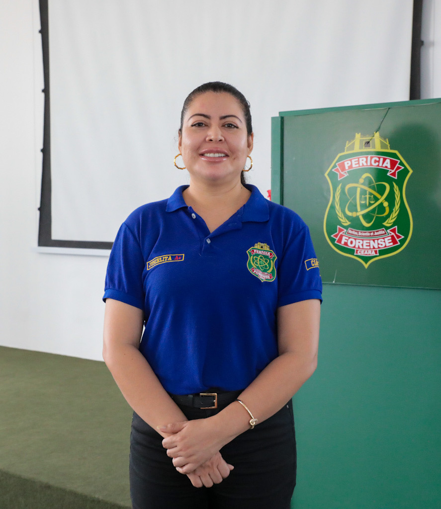 Juscelita Rodrigues, auxiliar de perícia e orientadora da Célula de Apoio Acadêmico de Ensino de Perícia da Academia Estadual de Segurança Pública do Ceará (Aesp/CE), explica o objetivo do estágio. “Hoje estamos aqui no auditório da Pefoce com as turmas de médicos peritos legistas, peritos legistas, peritos criminais, onde iniciaremos o estágio supervisionado para que esses profissionais comecem a aprender na prática a sua área de atuação dentro da Perícia Forense.”, destacou.