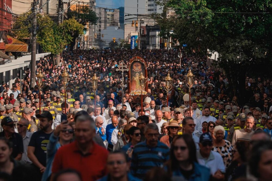 O evento integra o Ano Jubilar da Esperança, promovido pela Arquidiocese de Santa Maria, e reúne milhares de fiéis vindos de diferentes regiões do Estado. A programação de domingo iniciou às 6h30 com missa na Catedral, seguida da procissão, às 7h30, em direção à Basílica da Medianeira. O percurso de cerca de 2 quilômetros foi seguido de uma missa campal, às 9h30, celebrada pelo bispo de Roraima, Dom Evaristo Spengler, no Altar Monumento do Parque da Medianeira.