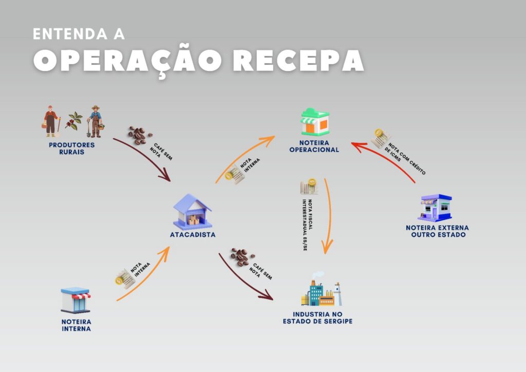 A Receita Estadual identificou, em um estudo que deu origem às investigações, um forte aumento na criação de empresas “noteiras”, abertas somente para emitir notas fiscais falsas. Essas notas eram usadas para três finalidades: esconder a origem do café produzido no Espírito Santo, dificultando o rastreamento da mercadoria; fraudar o recolhimento de ICMS por meio de créditos fiscais irregulares, gerados a partir de operações interestaduais simuladas; e concentrar dívidas tributárias em empresas registradas em nome de “laranjas”, sem capacidade financeira.