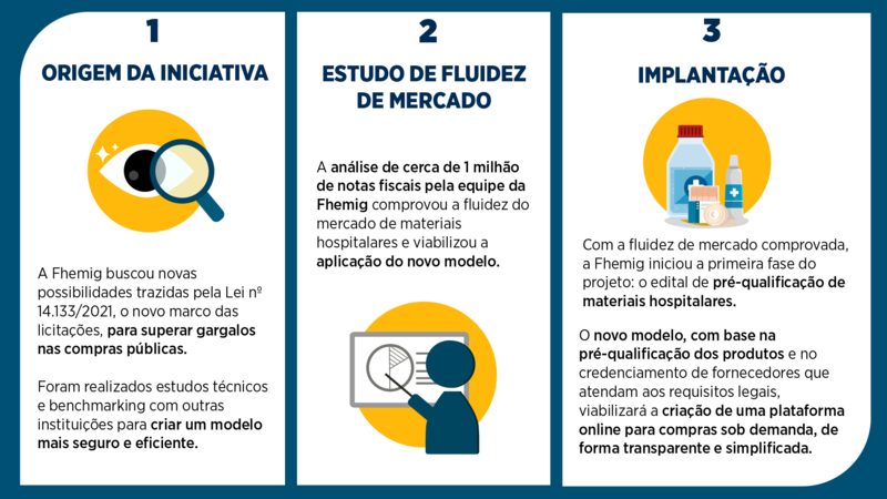 A Fundação Hospitalar do Estado de Minas Gerais (Fhemig) tornou-se a primeira instituição de Minas Gerais a publicar um edital de pré-qualificação de produtos para compras públicas. Com o apoio da Secretaria de Planejamento e Gestão de Minas Gerais (Seplag-MG), a instituição está implantando o projeto Marketplace: uma remodelagem da estratégia de compras que poderá reduzir em até 80% o tempo médio de aquisição de insumos, permitindo reposições pontuais sempre que necessário.