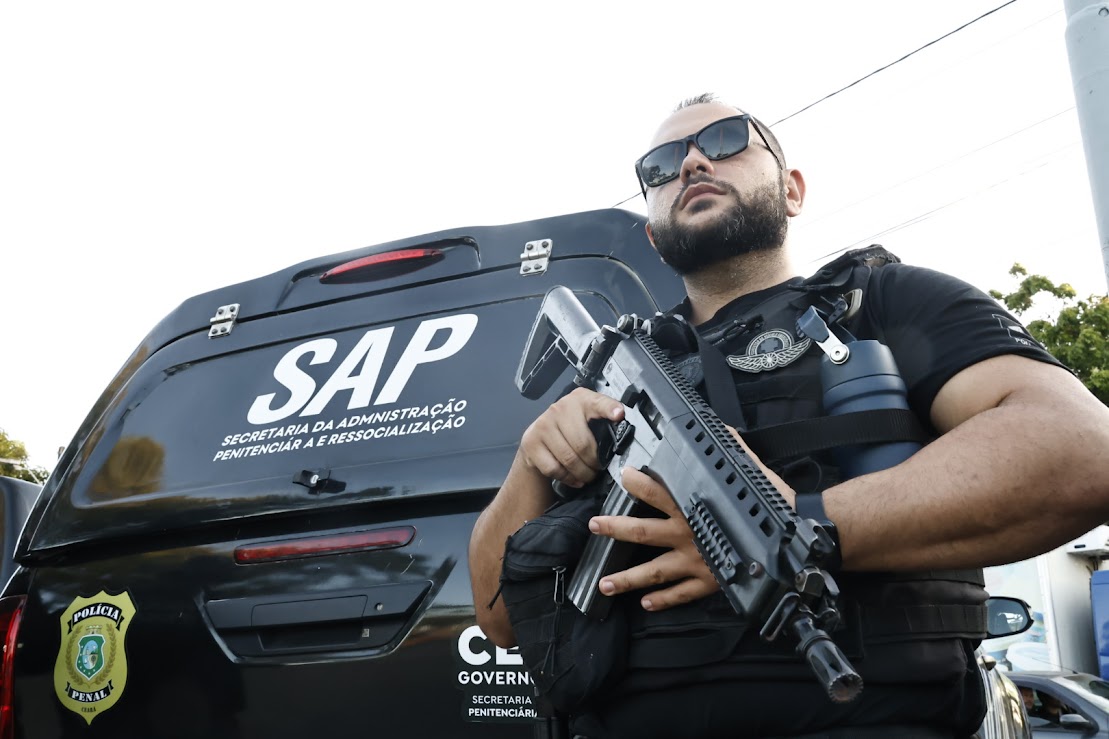 O secretário Roberto Sá esteve acompanhado do secretário da Administração Penitenciária e Ressocialização (SAP), Mauro Albuquerque; do delegado-geral da Polícia Civil do Ceará, Márcio Gutierrez; do comandante-geral da Polícia Militar do Ceará, coronel Sampaio; e de outras autoridades.