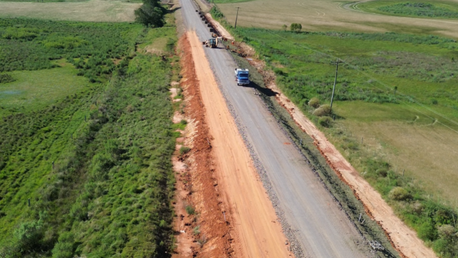 Realizada por meio da Secretaria de Logística e Transportes (Selt) e do Departamento Autônomo de Estradas de Rodagem (Daer), a obra deve ser concluída até o final de 2026. Do total de 22,7 quilômetros, seis já estão asfaltados, a partir do entroncamento da BRS-293, em Bagé.