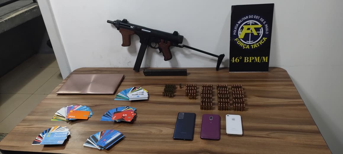 Homem é preso com submetralhadora e mais de 90 cartões bancários na zona sul de SP