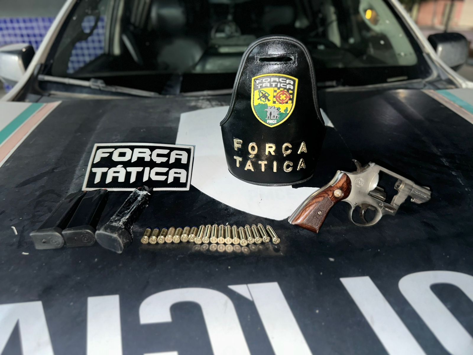 Durante a busca pessoal, foi encontrado em sua posse um revólver e 19 munições. Diante dos fatos, o suspeito recebeu voz de prisão e foi conduzido à Delegacia Regional de Polícia Civil de Crateús, onde foi autuado por porte ilegal de arma de fogo e desobediência. Ele permanece à disposição da Justiça.