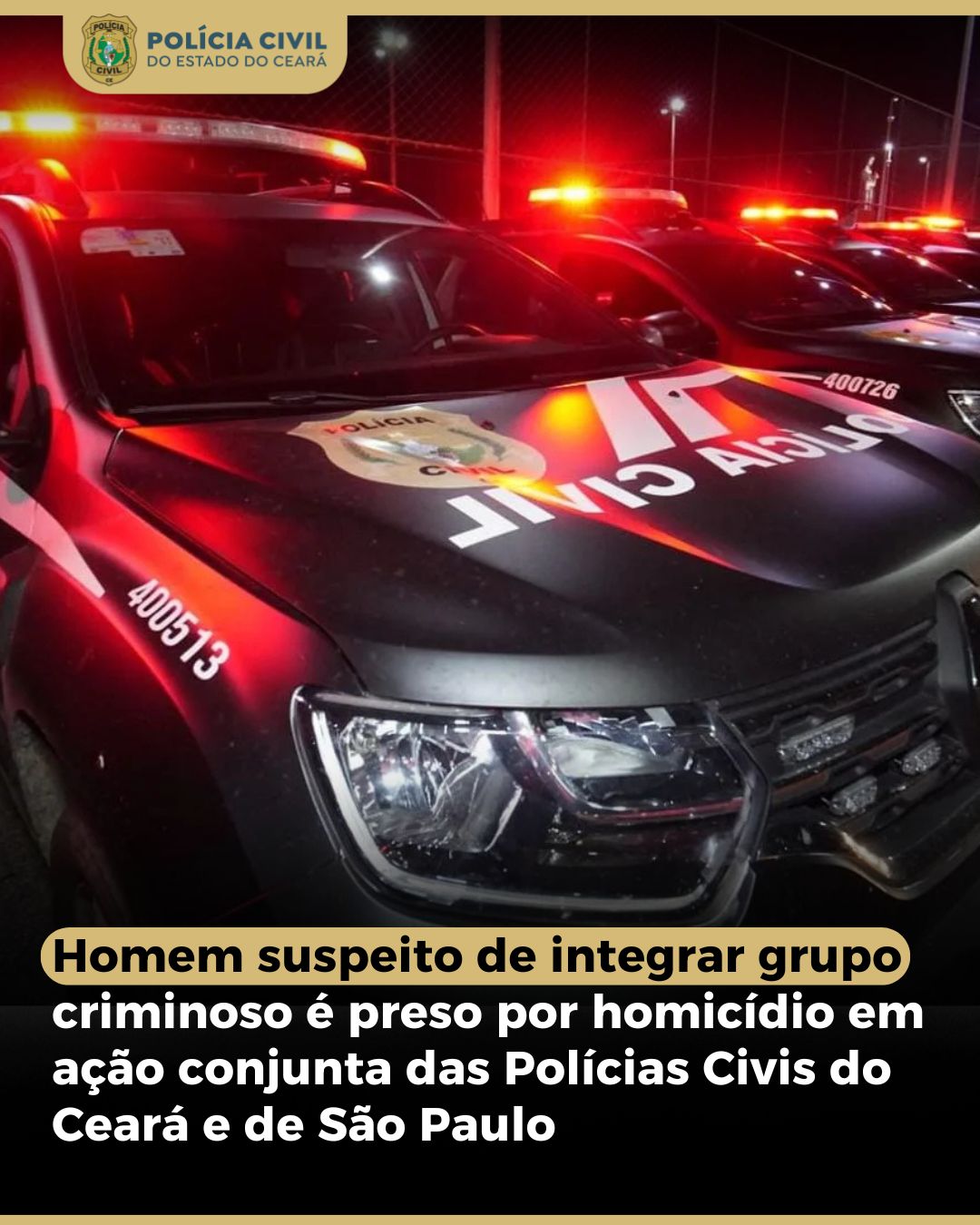 Homem suspeito de integrar grupo criminoso é preso por homicídio em ação conjunta das Polícias Civis do Ceará e de São Paulo
