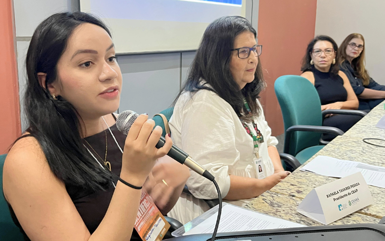 Durante a jornada no Hospital de Saúde Mental, a psicóloga Mayara Moura, de 36 anos, destacou a importância do evento como espaço de troca de experiências, formação e valorização do cuidado em saúde mental. Atuando atualmente no Centro Especializado em Reabilitação (CER), que atende pessoas com deficiência intelectual e deficiência física, em Russas, no interior do estado do Ceará, Mayara contou que sua trajetória profissional está profundamente ligada à história de sua família e ao próprio hospital.