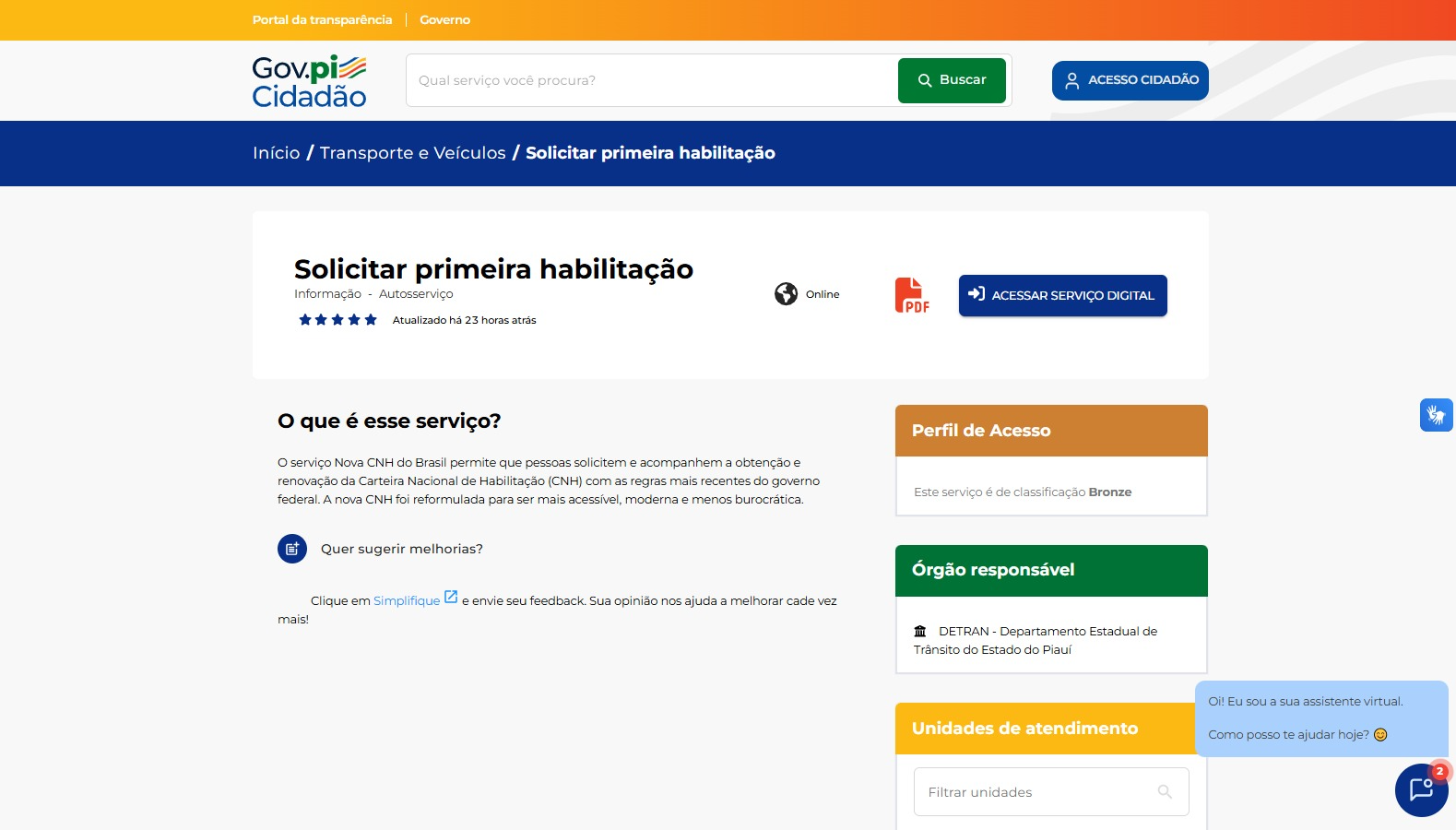 A plataforma Gov.pi Cidadão tem se consolidado como uma das principais portas de acesso a serviços públicos digitais no estado, reunindo centenas de serviços que facilitam o dia a dia dos piauienses. Isso inclui, além da habilitação, solicitações de documentos, consultas e outras funcionalidades que antes exigiam atendimento presencial.