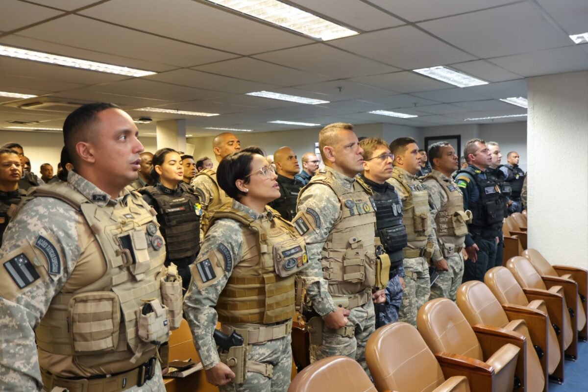 Na manhã desta segunda-feira (20), policiais militares da Polícia Militar do Estado de Sergipe (PMSE) participaram da aula inaugural das 16ª e 17ª edições do Curso Nacional de Uso Diferenciado da Força no auditório do Tribunal de Contas de Sergipe (TCE), em Aracaju. O evento marcou o início das capacitações que terão duração de uma semana e têm o objetivo aprimorar técnicas e conhecimentos relacionados ao uso adequado da força em operações policiais.