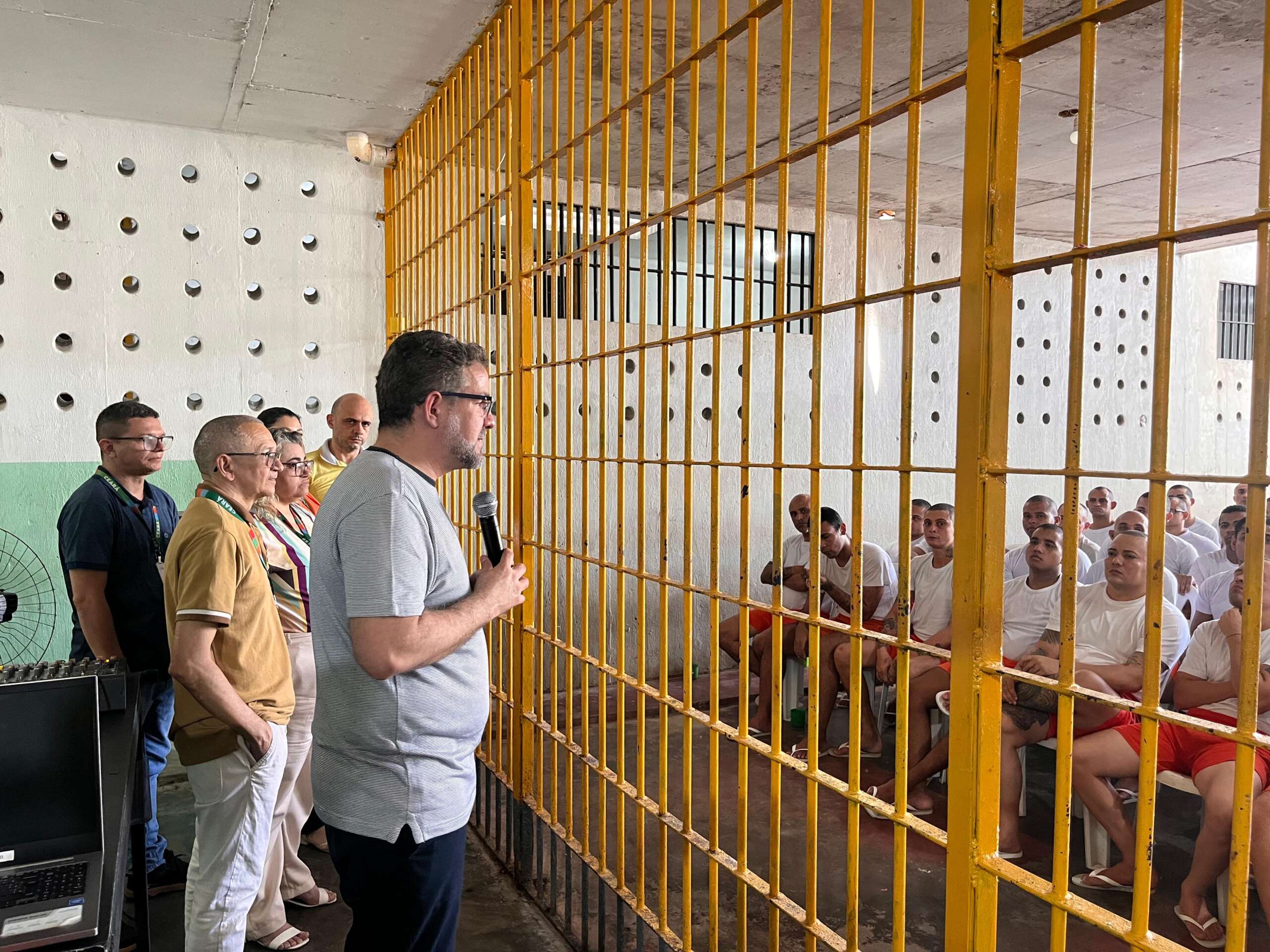 A abertura dos aulões, na Unidade Prisional de Aquiraz, contou com a participação de um interno integrante do projeto de leitura “Histórias que Libertam” e do programa de reforço escolar. O interno — que antes atuava como professor em escolas públicas — abriu o evento com uma fala inspiradora sobre o poder transformador da educação, mesmo em situação de privação de liberdade, e ministrou dicas de redação voltadas para o exame, compartilhando técnicas e orientações práticas para os participantes.