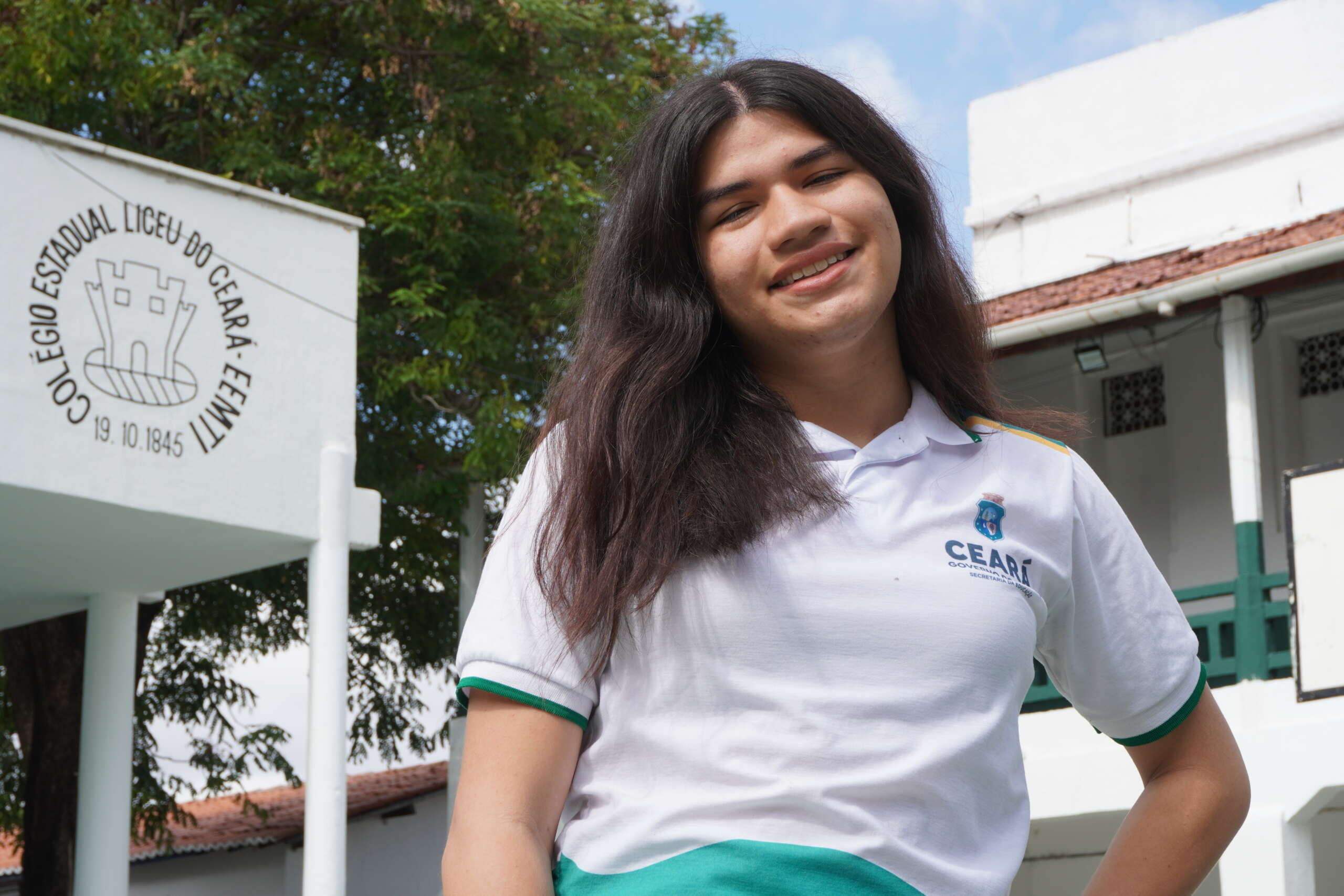 “O que mais gosto na escola é estar com os amigos. Também adoro ler e participar das atividades do Grêmio. Gosto muito do acolhimento que existe aqui, não só da gestão, mas também dos funcionários da limpeza, da cozinha e dos outros estudantes. É algo especial, como uma família. Como passamos o dia todo juntos, criamos esse afeto. A gente é muito militante, e a voz dos alunos é de protagonismo. Sou menina trans e, quando entrei como diretora da Diversidade de Gênero, na 1ª série, com 15 anos, fiz uma palestra para toda a escola — justamente no dia do meu aniversário. Foi muito especial, e muitas pessoas gostaram. Foi um dos maiores presentes que eu poderia ter. O Liceu continuará sendo uma marca do Ceará. Tenho muito orgulho de fazer parte dessa trajetória”, considera.