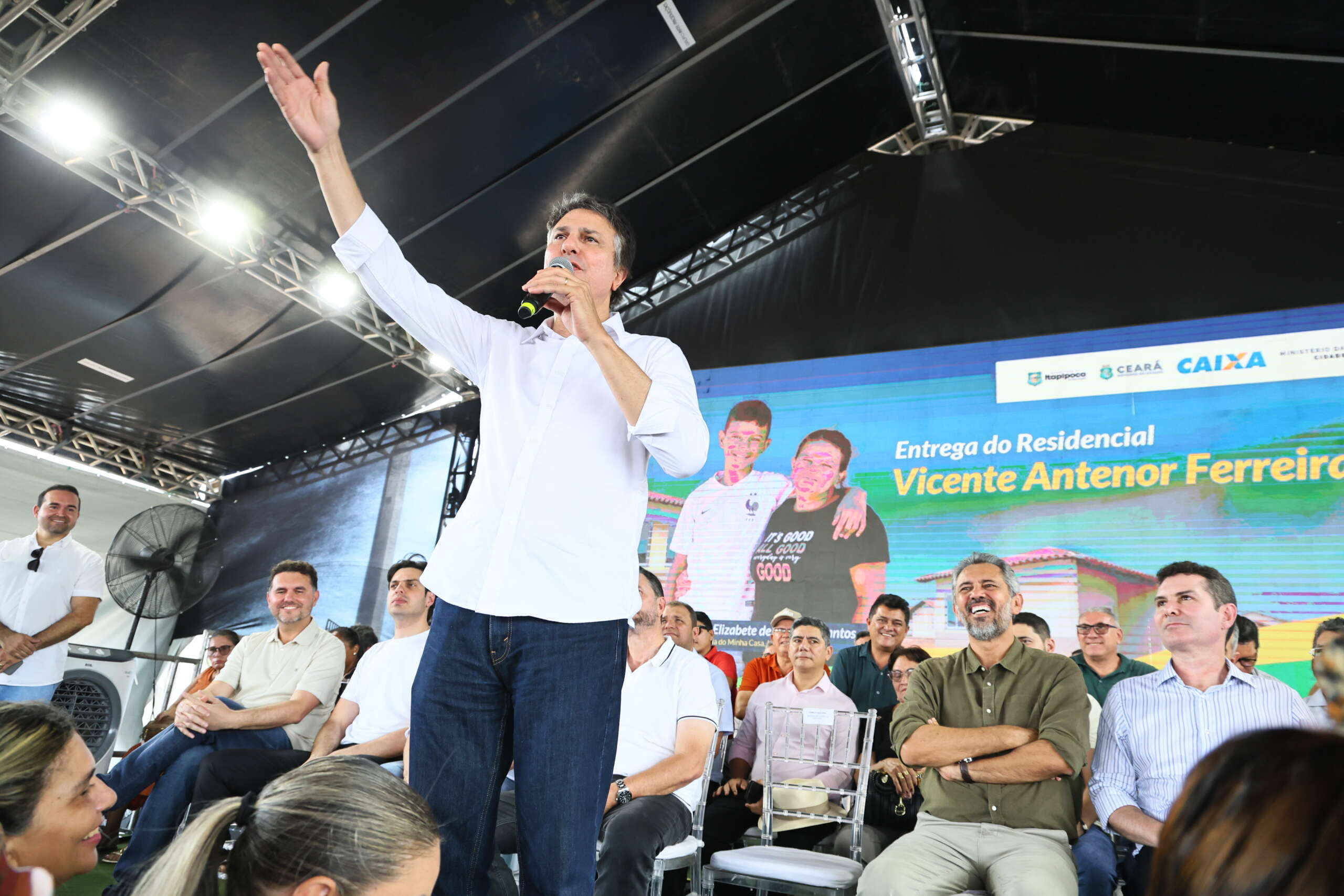 Nesta segunda-feira (3), 500 famílias cearenses realizam o sonho da casa própria com a entrega do Residencial Vicente Antenor Ferreira Gomes, em Itapipoca, resultado de parceria entre os governos federal e estadual e a prefeitura municipal. A cerimônia ocorreu pela manhã, com a presença do governador Elmano de Freitas, dos ministros das Cidades, Jader Barbalho Filho e Educação, Camilo Santana – que representou o presidente Lula na ocasião. O prefeito de Itapipoca, Felipe Pinheiro, também participaram do ato, além de outras autoridades.