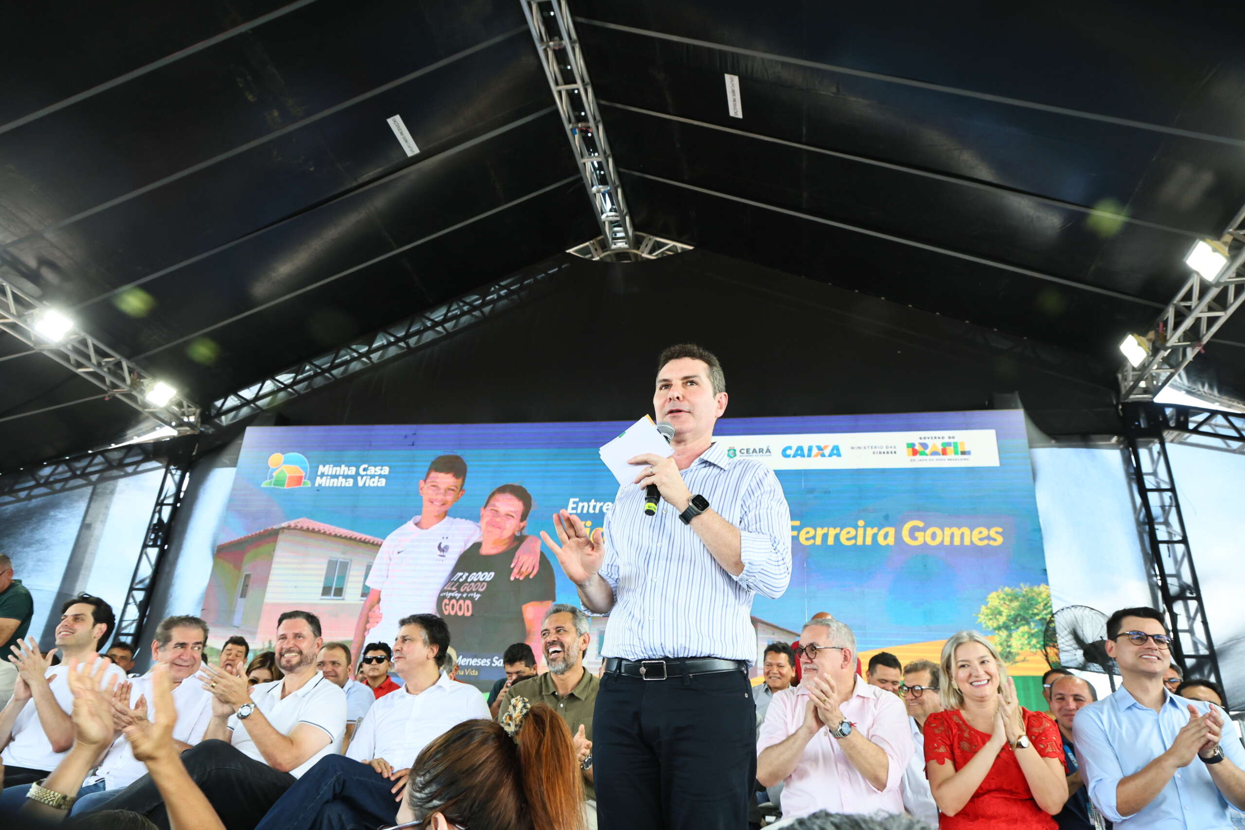 Camilo Santana, ministro da Educação, representou o presidente Lula na cerimônia. “Que Deus abençoe vocês, cuidem bem dessas casas. Este é um espaço de vocês, podem bater no peito e dizer: ‘agora eu tenho a minha casa. Esta casa é minha, de direito e de fato’”, disse, ao lembrar da retomada do programa Minha Casa, Minha Vida no governo atual, que vem garantindo o direito à moradia a todos os brasileiros.